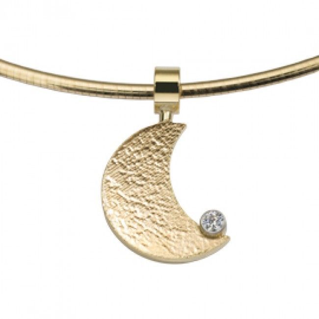 The Moon is a lunar shaped pendant of appr. 16 mm, which can be provided with a fragment of a partial of a paw print. Gold version diamond: 0.05 carat or zircon, in silver with a 2.5mm zircon.