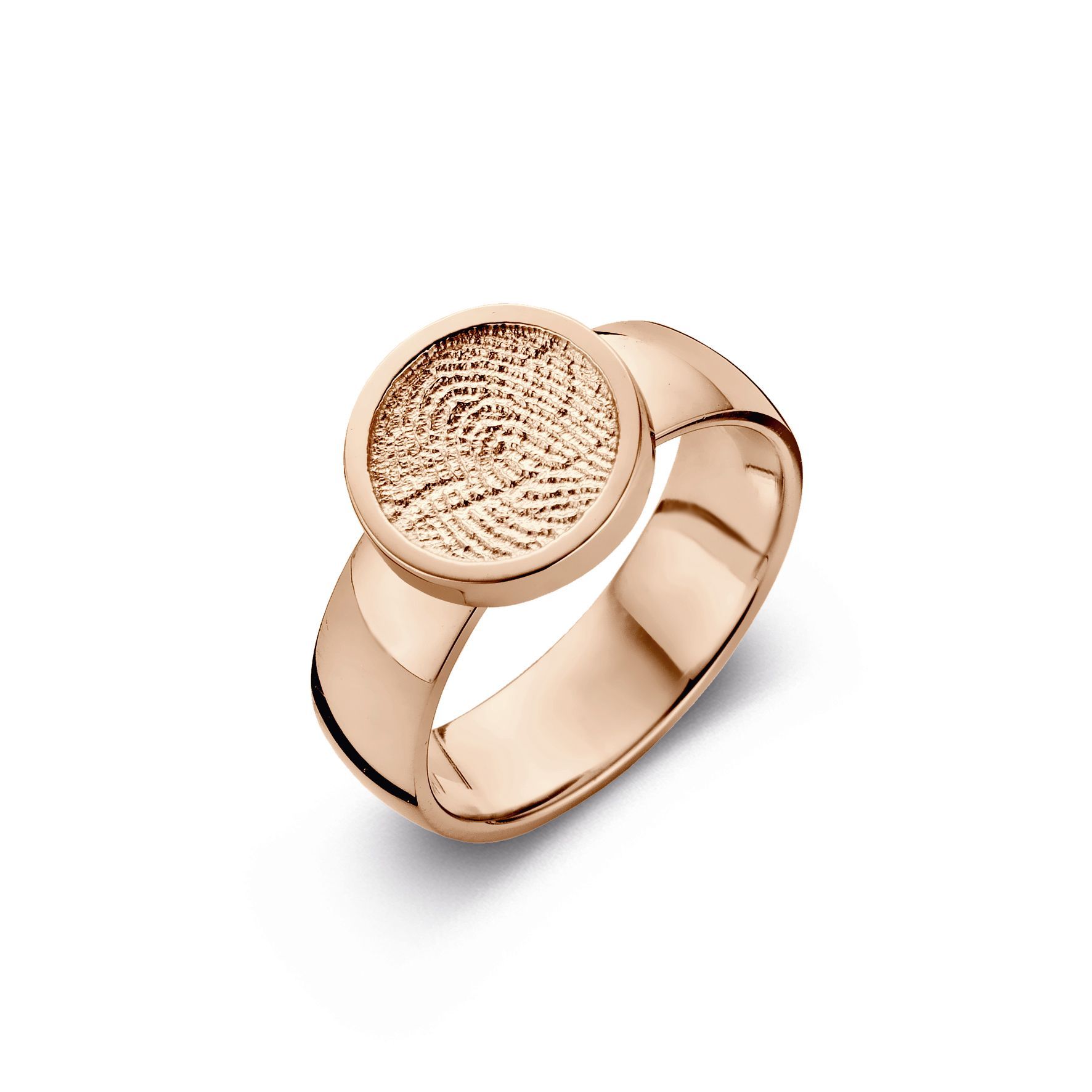 The Bliss 1 ring is an appr. 6mm wide ring, with an appr. 12mm round partial pawprint cushion relief.