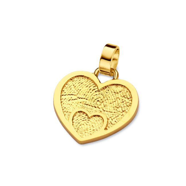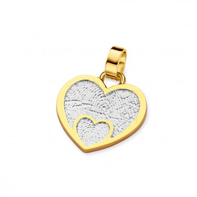 The Loved One is a heart-shaped pendant of appr. 18×18,5mm, which can be provided with two fingerprints and/or fragments of a footprint.
