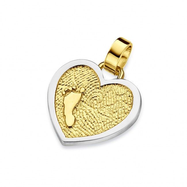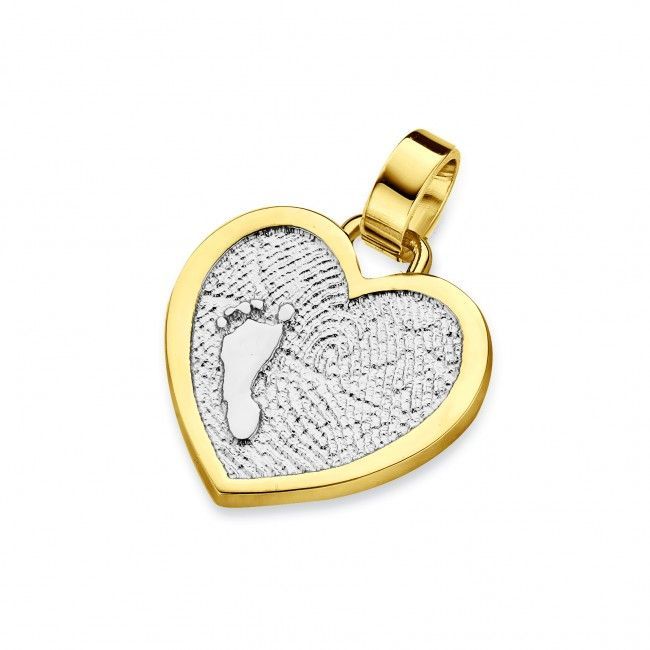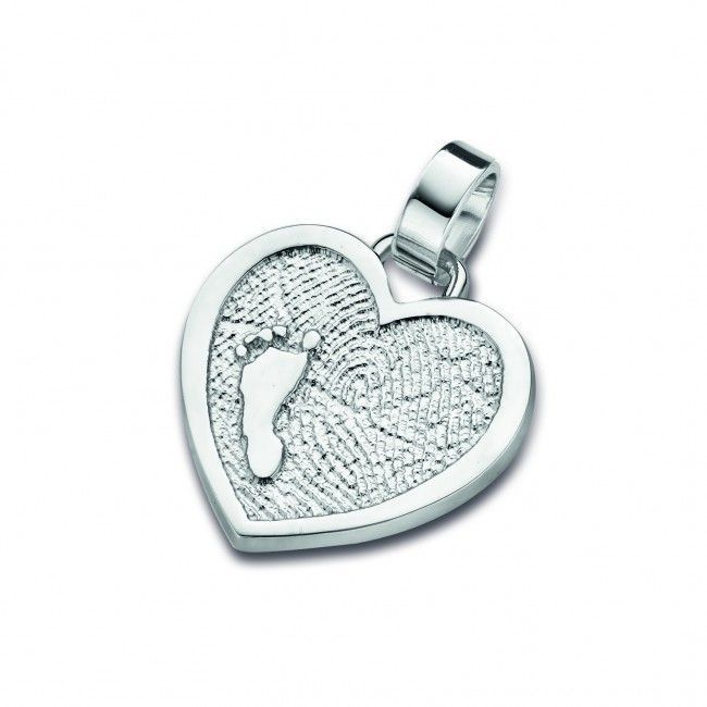The Together is a heart-shaped pendant of about 18 x 18,5 mm, which can be provided with a footprint onto a fingerprint/partial footprint.
