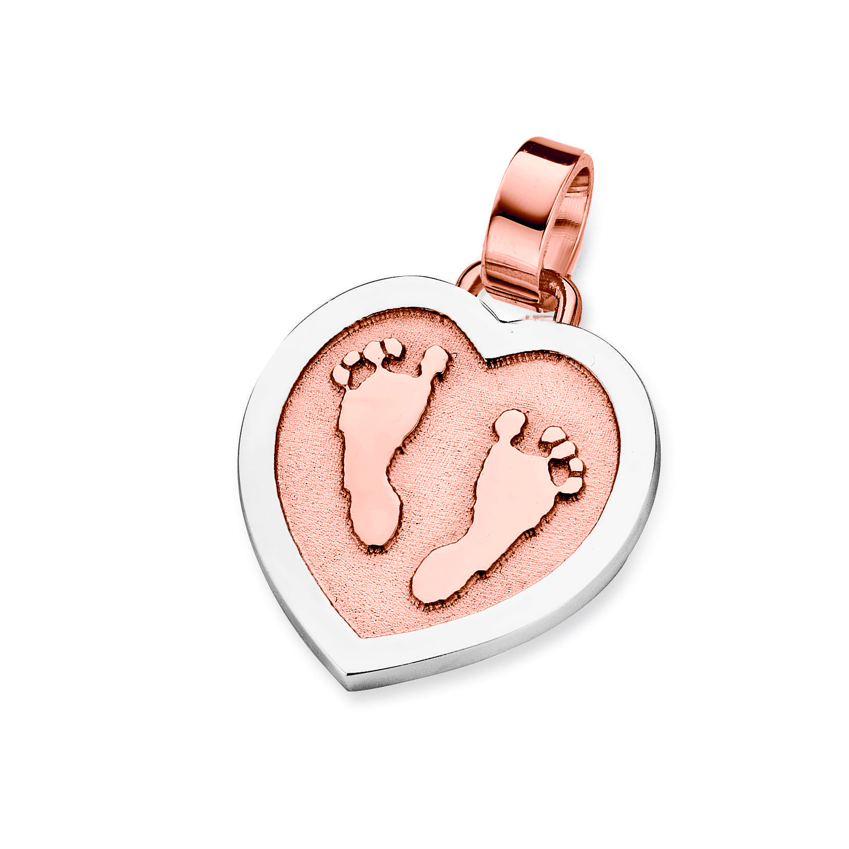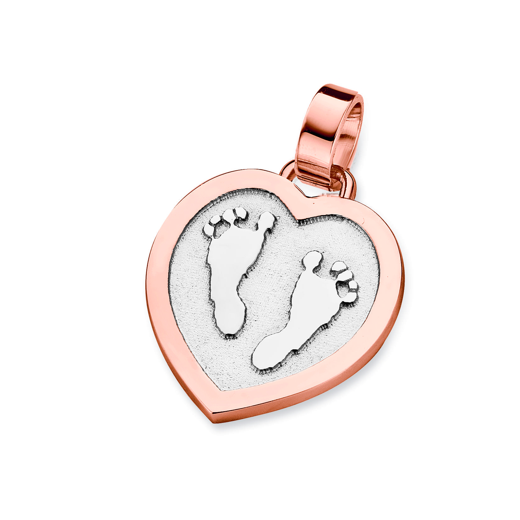 The Cherish is a heart shaped pendant of about 18 mm with an edge, which can be provided with a footprint.