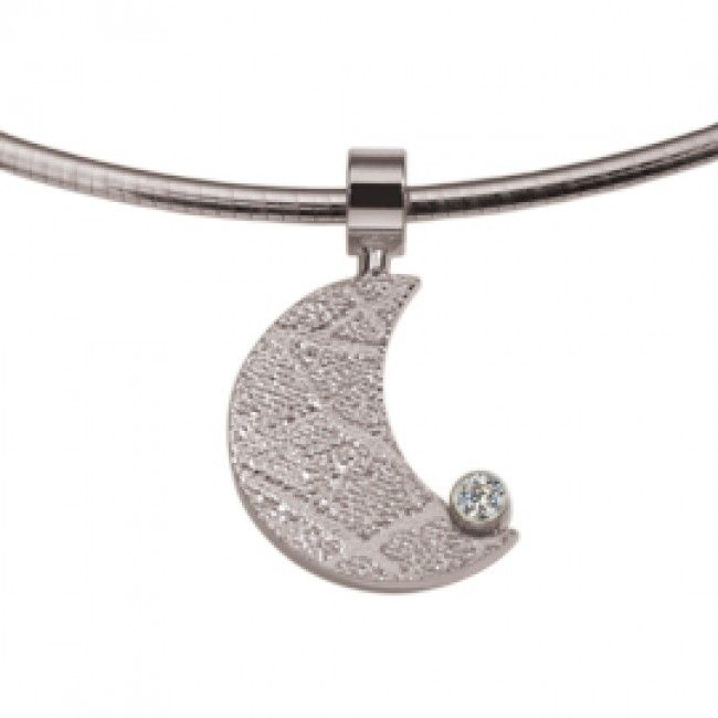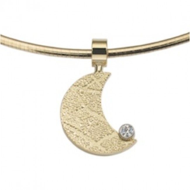 The Moon is a lunar shaped pendant of about 16 mm, which can be provided with a part of a footprint. Gold version with diamond cut: 0.05 carat or a 2.5mm zirconia, in silver with a 2.5mm zirconia.