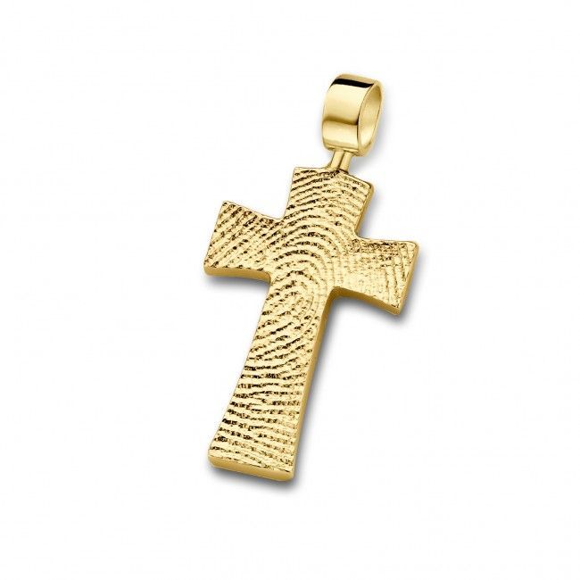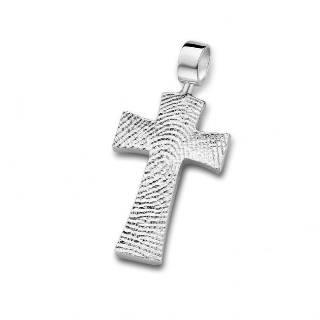 The Peace is a cross-shaped pendant, made of white or yellow gold, or silver. A fingerprint covers the entire surface of the cross on this remarkable piece of jewellery. Pendant’s approximate size: 13 x 21mm.