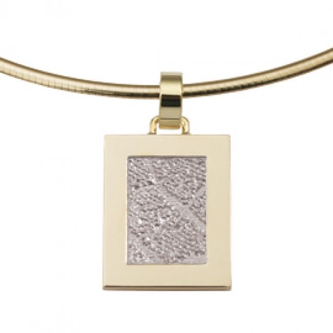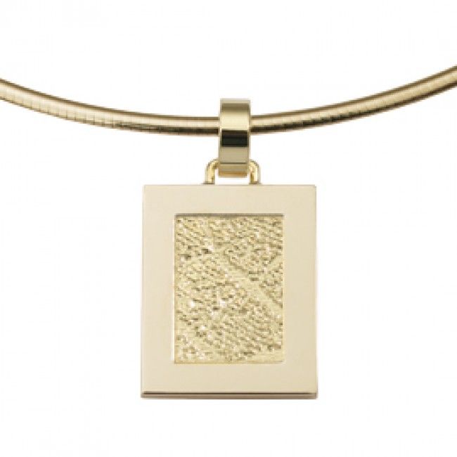 The Pure is a rectangular pendant of about 15 x 19 mm with a frame, which can be provided with a partial of a footprint.