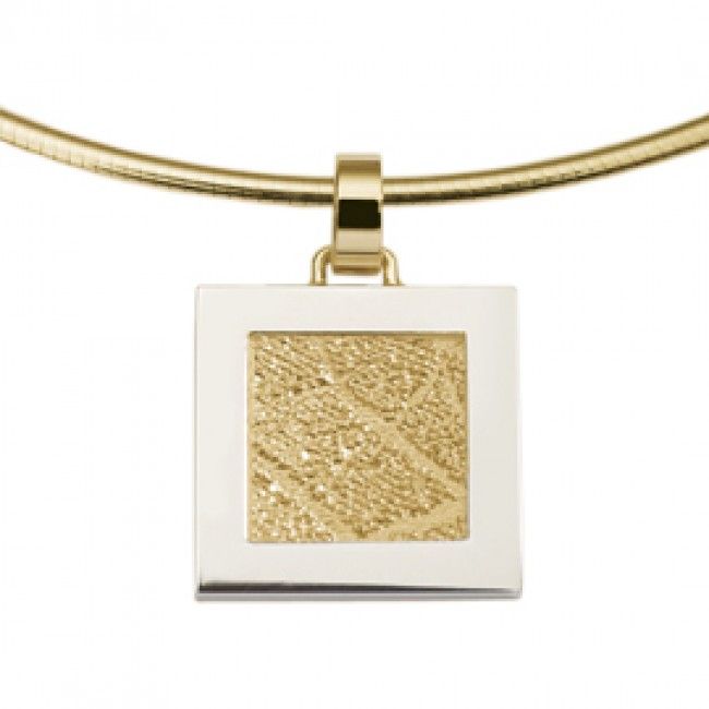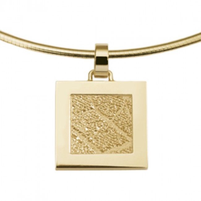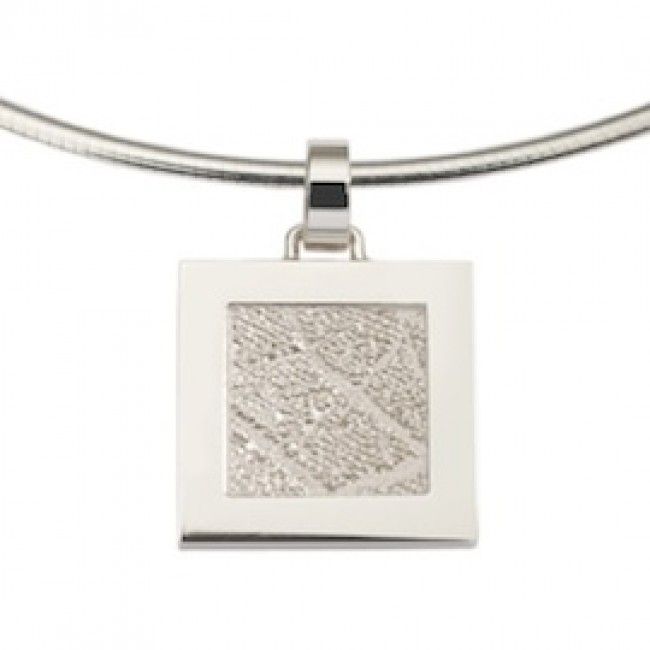 The Sincere is a square pendant of about 17,5 x 17,5 mm with a frame, which can be provided with partial of a footprint.