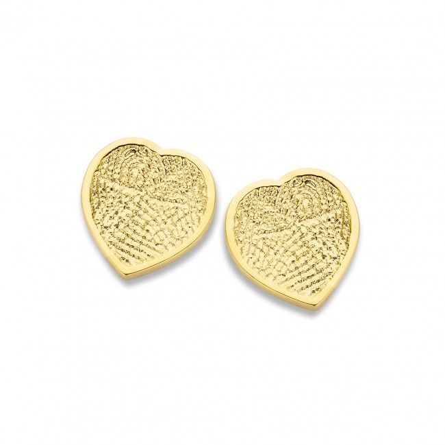 The Bliss 3 earrings are appr. 11mm heart shaped earrings, which can be provided with one or two different fingerprints. These earrings are available in the versions shown below.