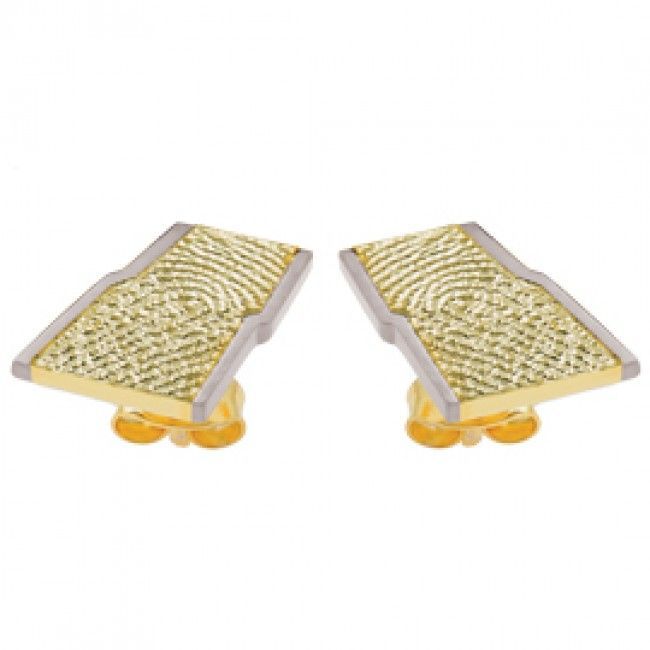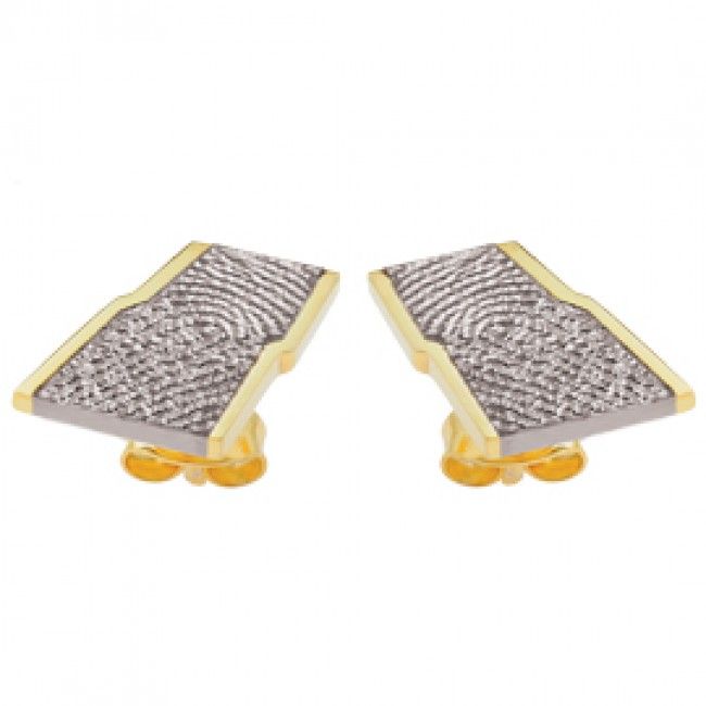 The Light is a rectangular earring of appr. 8x10mm with a ligtning, which can be provided with a or two different fingerprints. These earrings are available in the versions shown below.