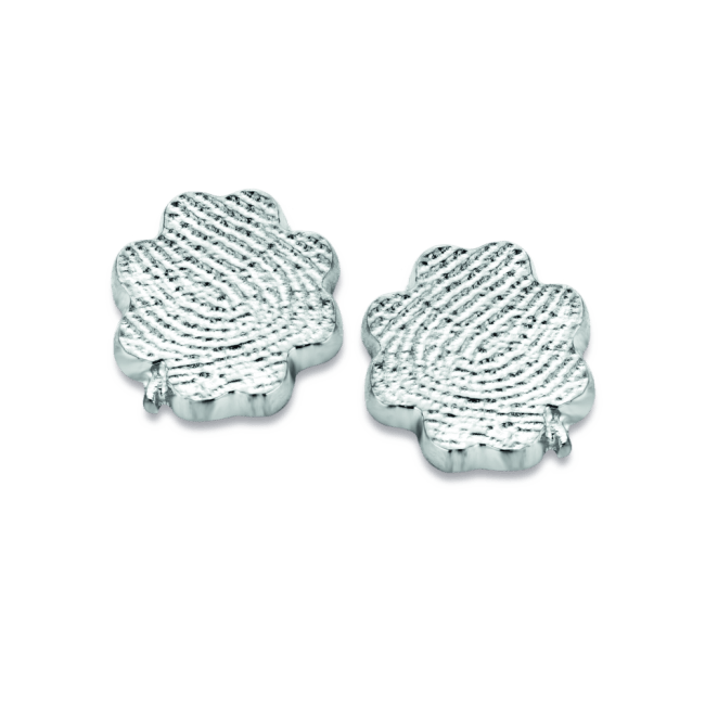 The Luck is a four leaf clover shaped earring of appr. 11mm, which can be provided with one or two different fingerprints. These earrings are available in the versions shown below.