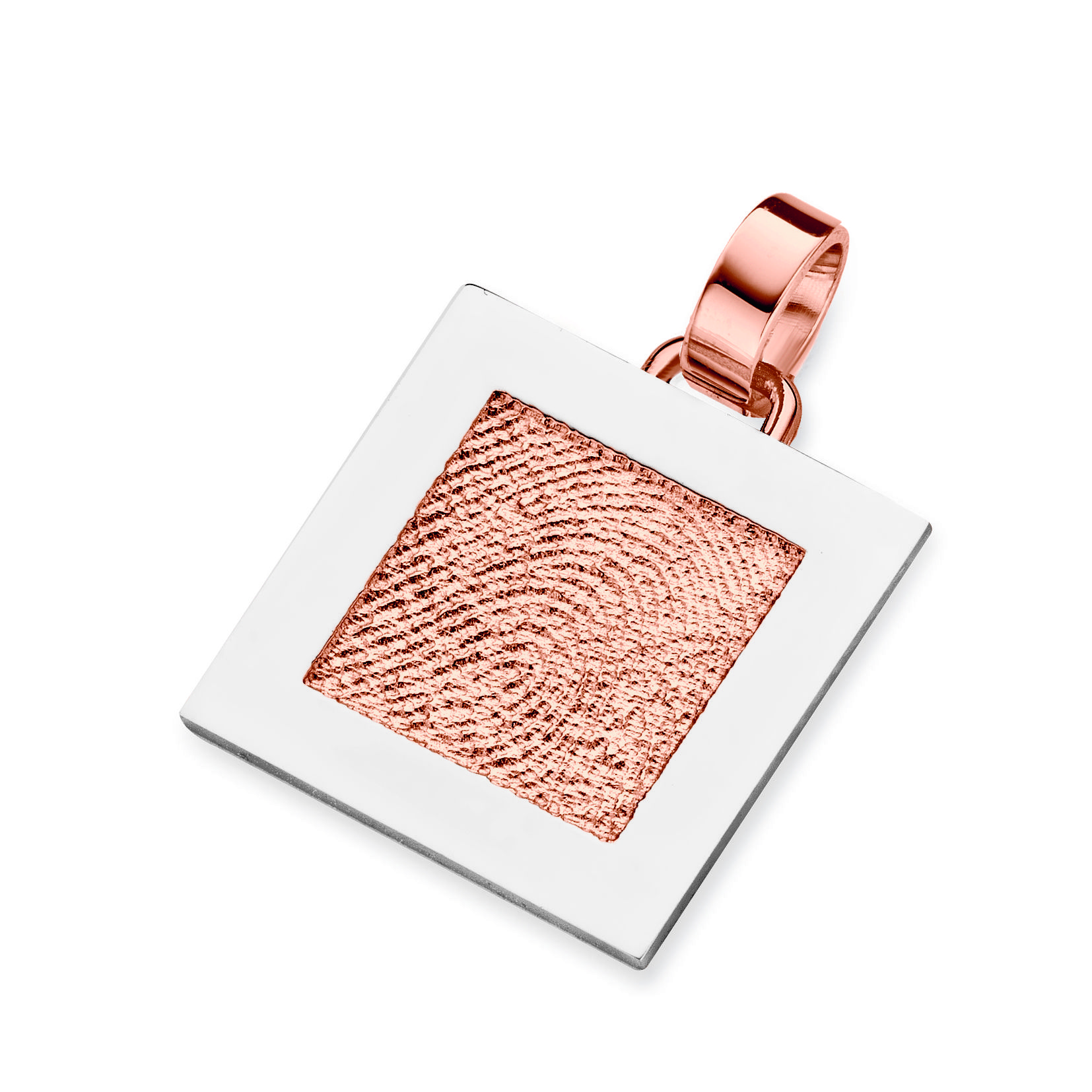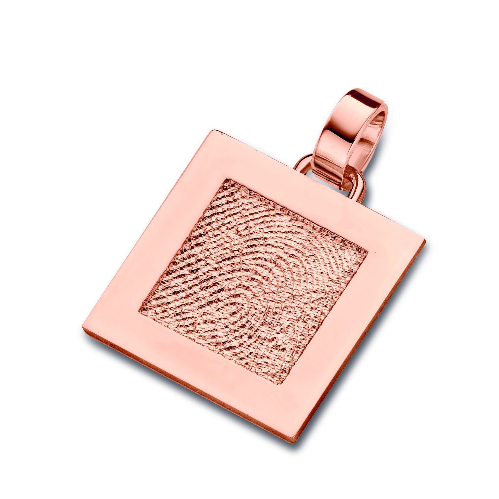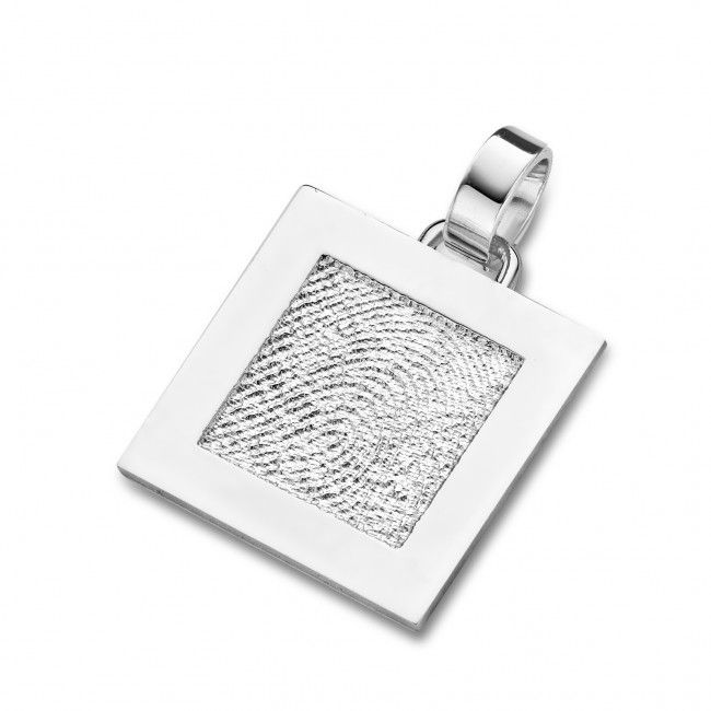The Sincere is a lovely piece of fingerprint jewellery – a square pendant, approximately 17.5 x 17.5 mm in size, skillfully crafted in gold or silver.