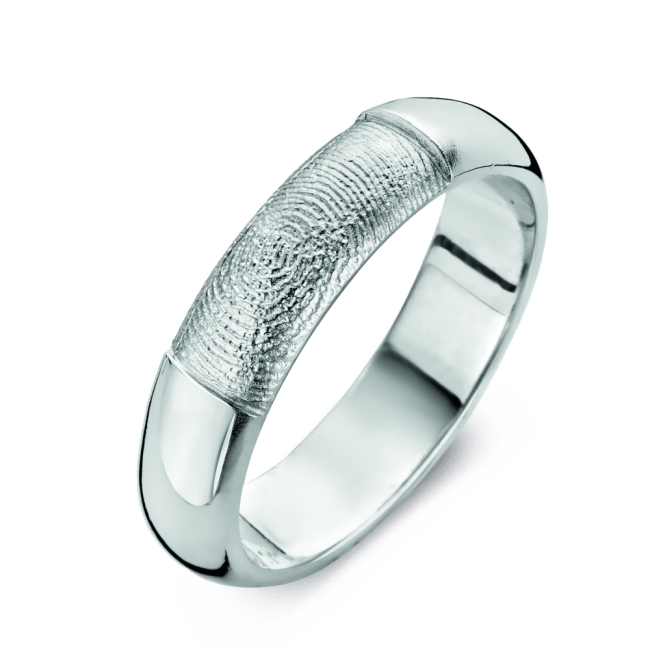 The Love is a convex ring of appr. 5,5mm width, with a fingerprint. The ring is available in the versions shown below.