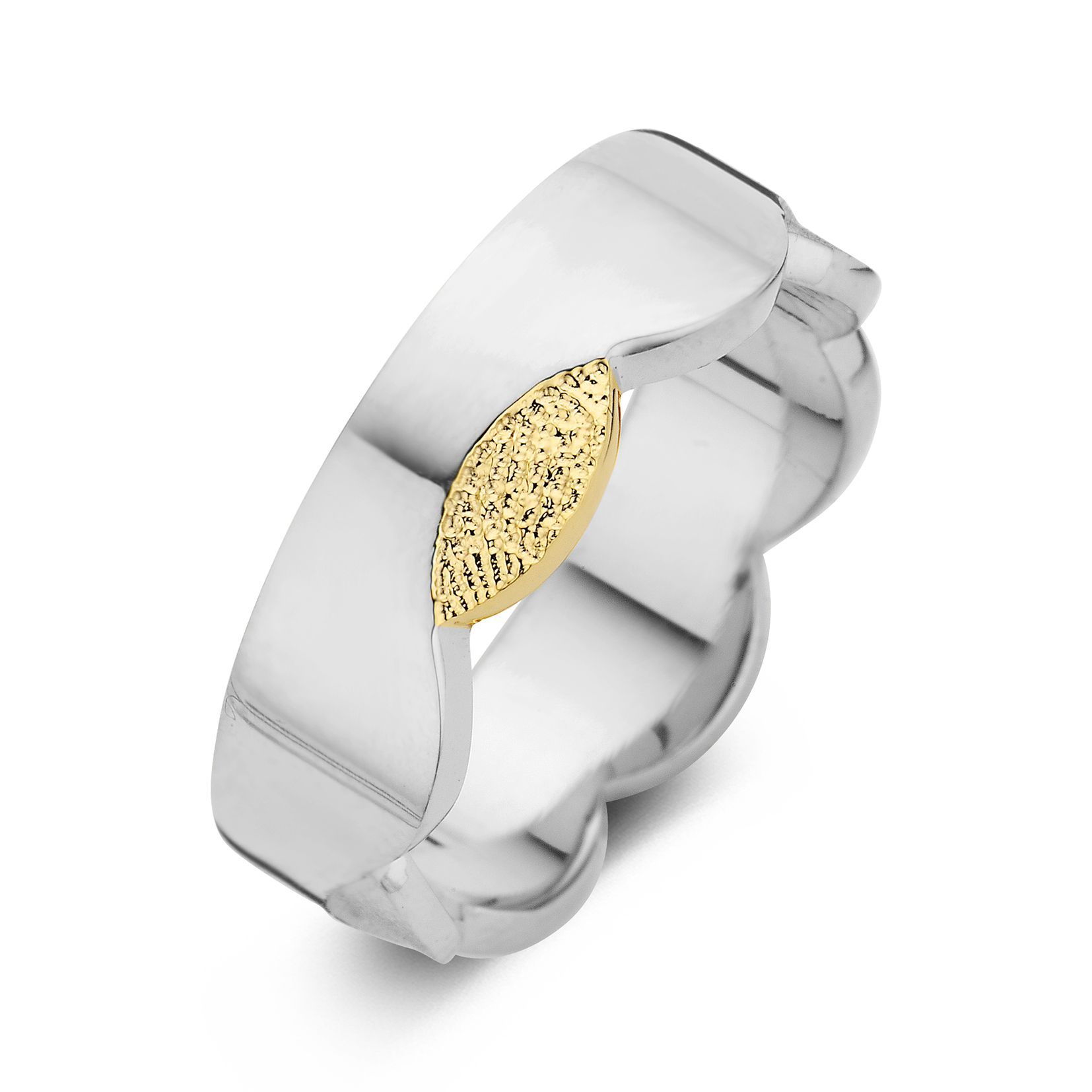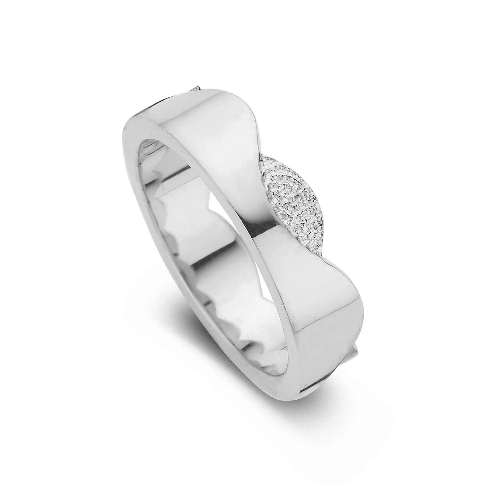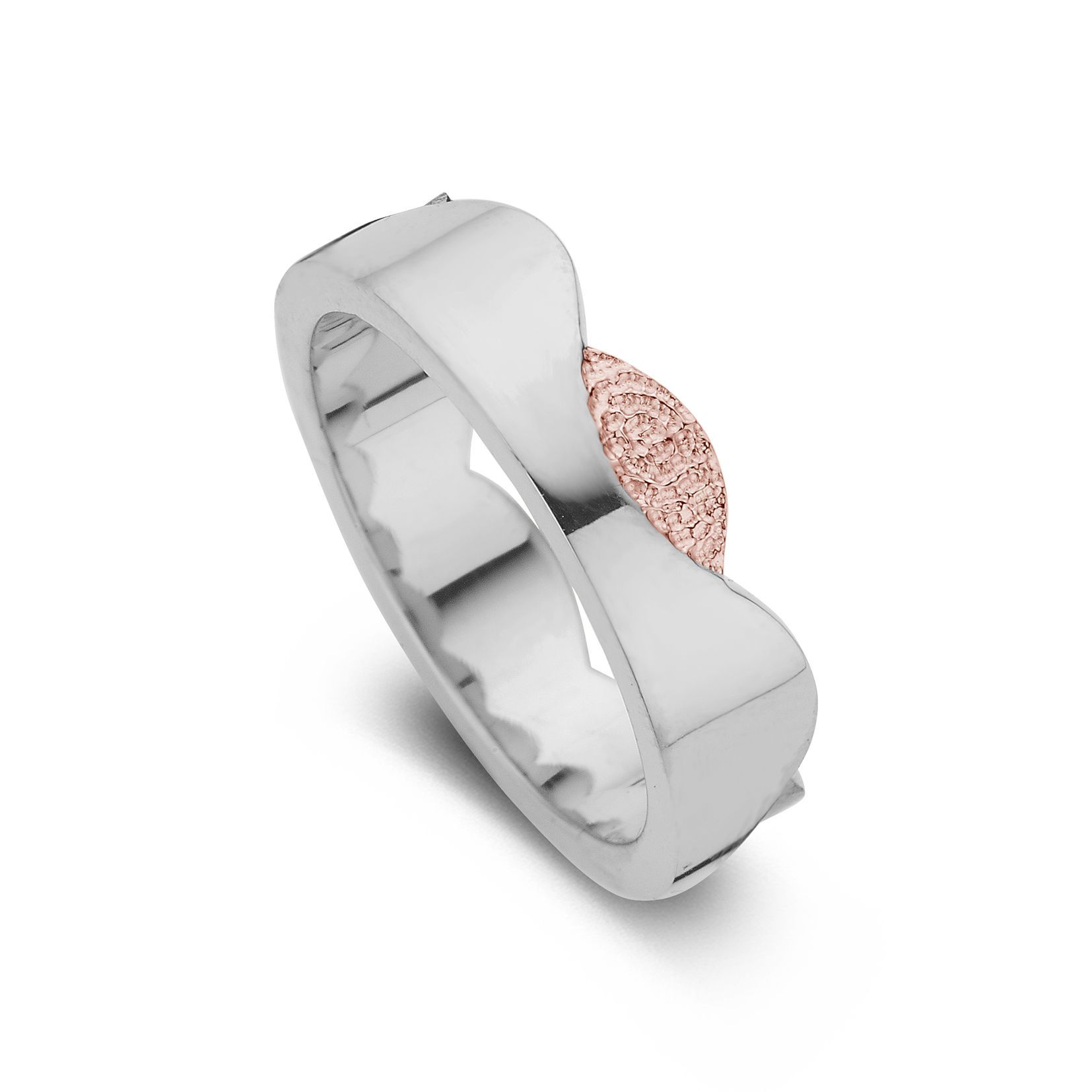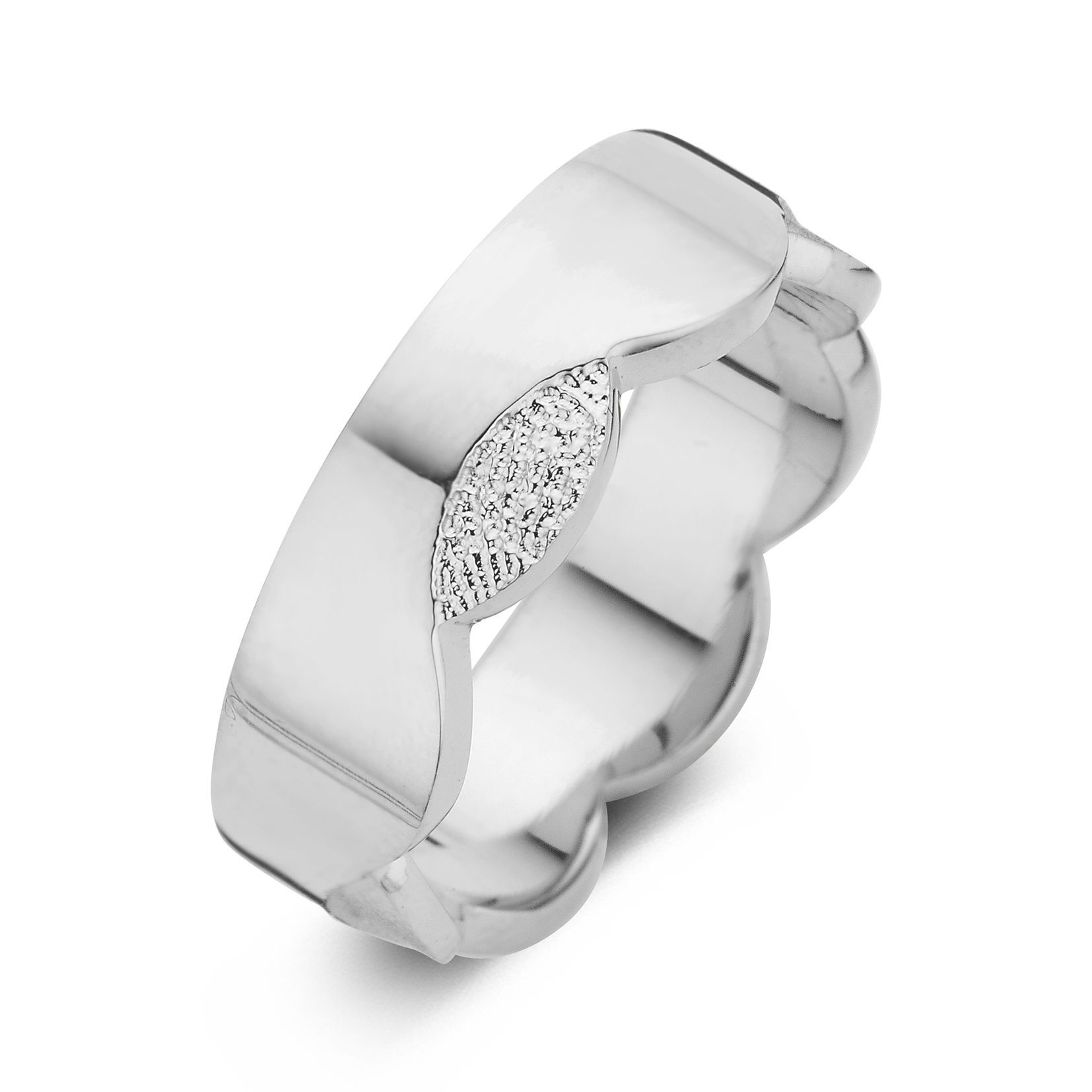 The Devoted is a wedding ring of approximately 7mm or 6mm width, with a fingerprint. The ring is available in the versions shown below.