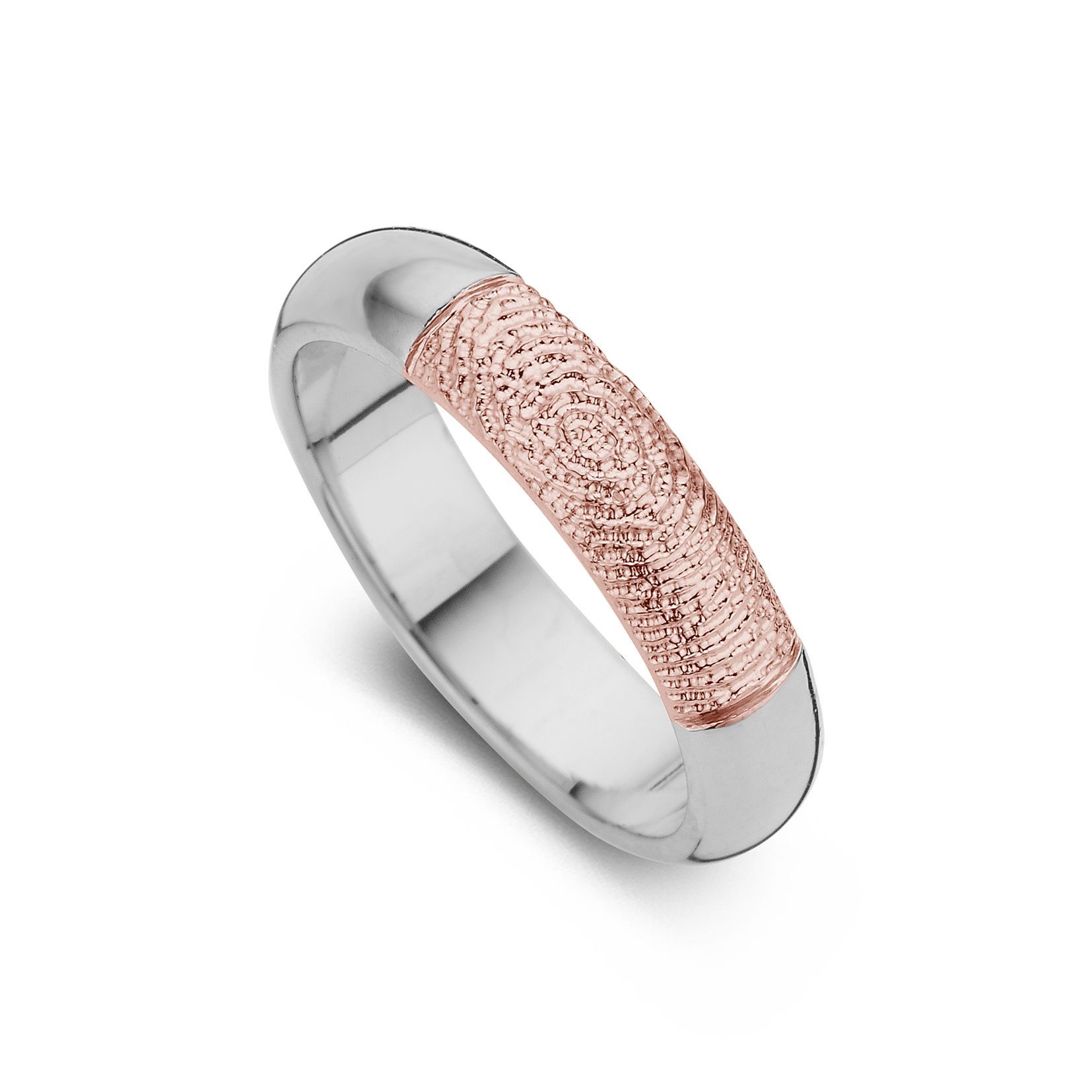 The Love is a ring of appr. 6,5mm or 5,5mm width, with a fingerprint. The ring is available in the versions shown below.