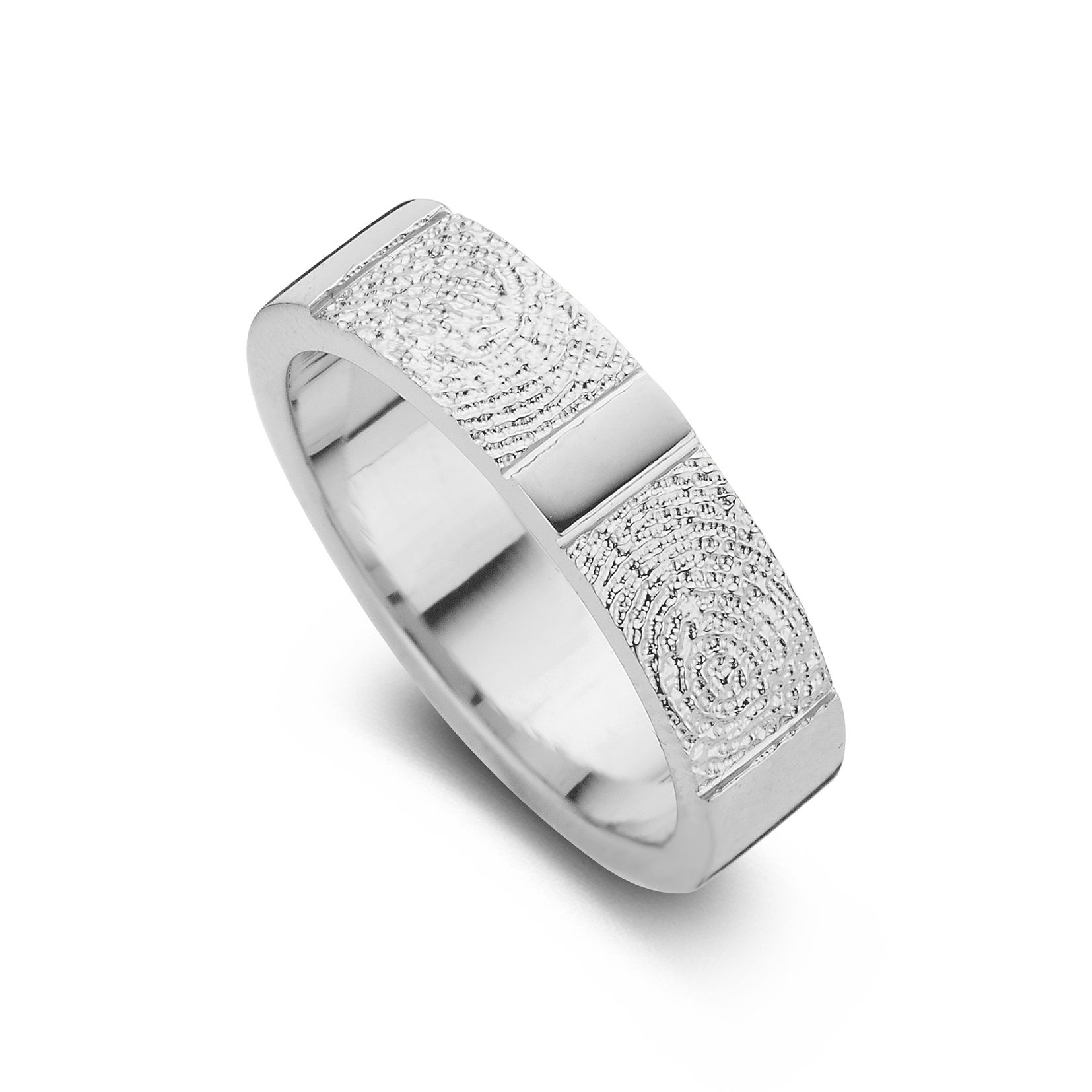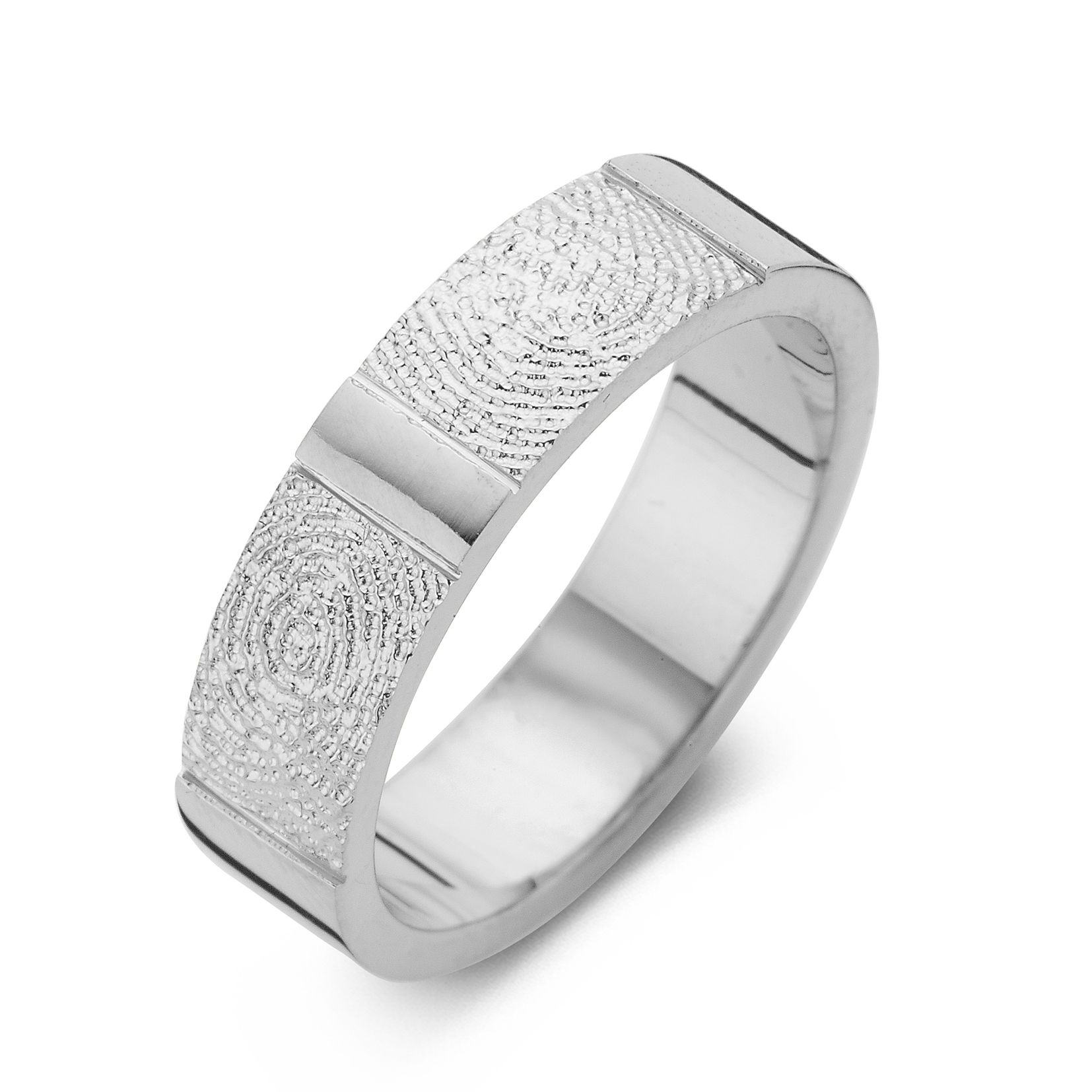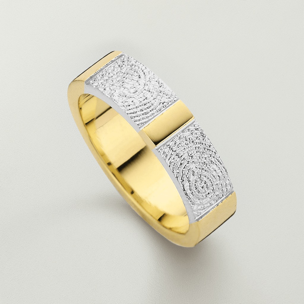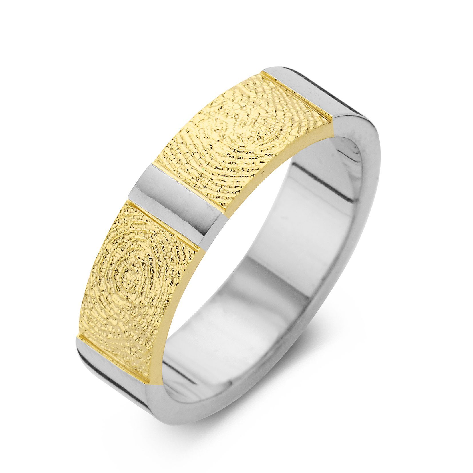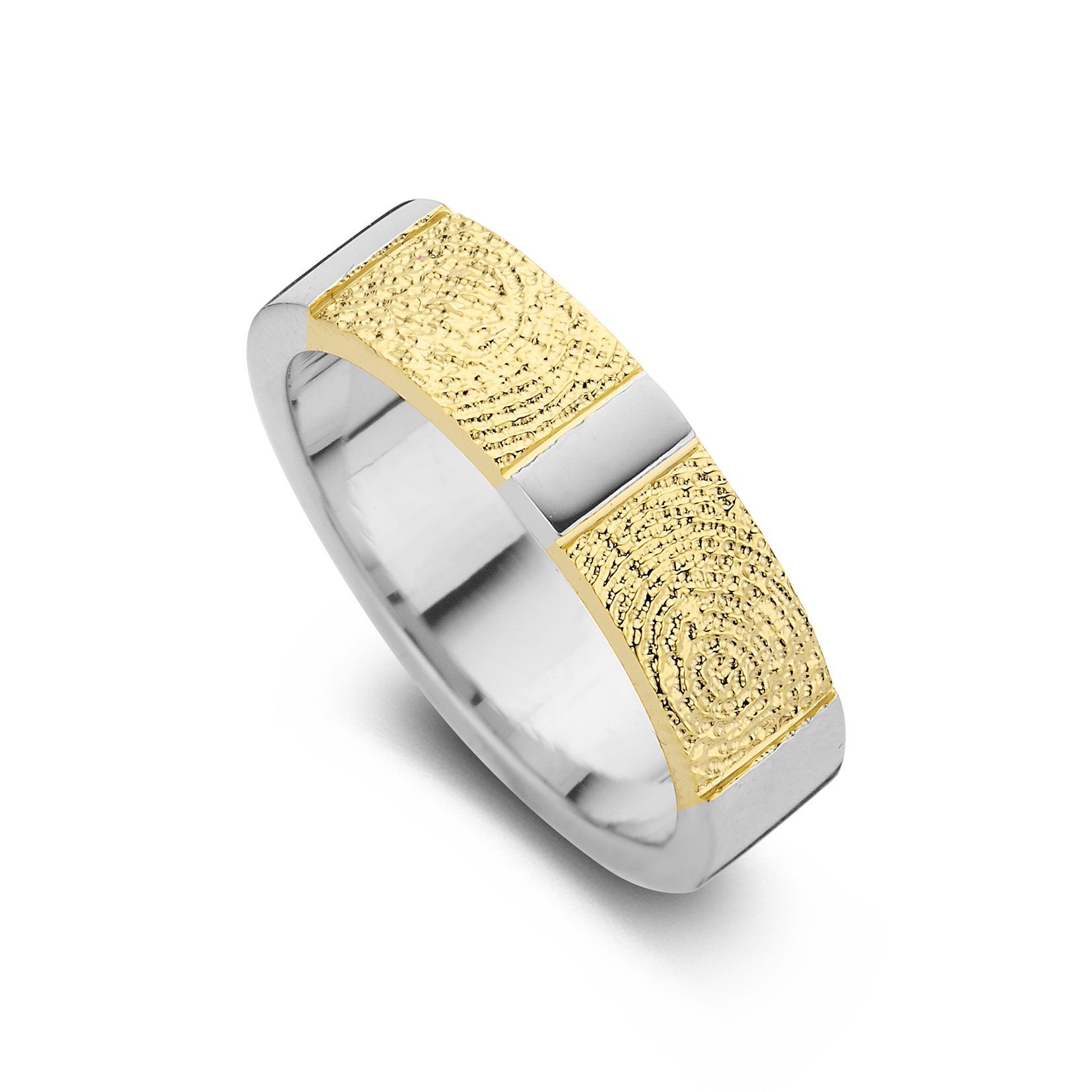 The True Double Print is a ring of appr. 6,5mm or 5,5mm width, with a fingerprint. The ring is available in the versions shown below.