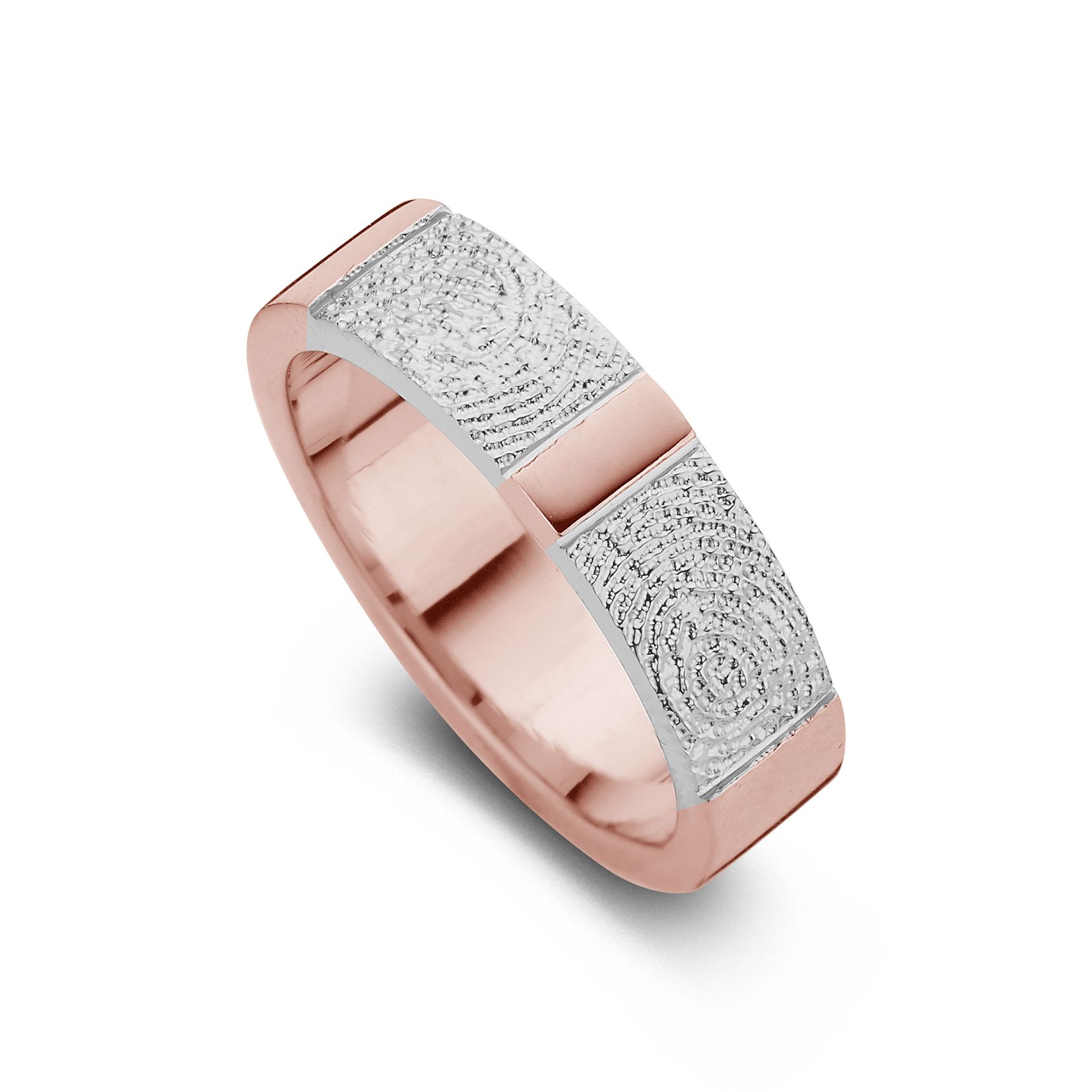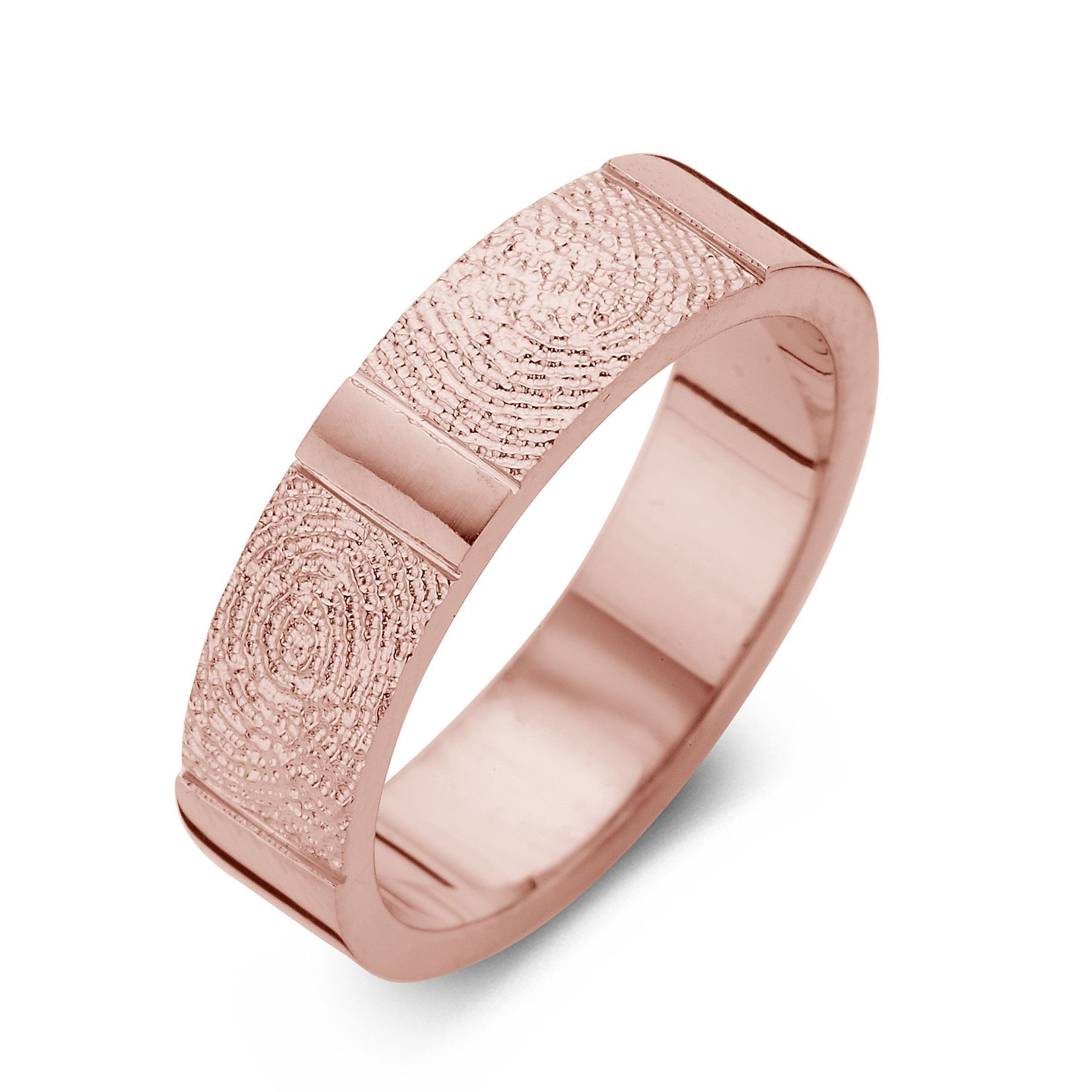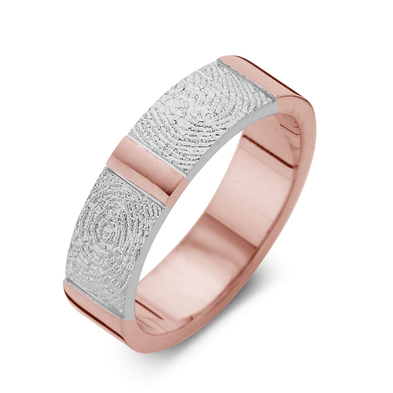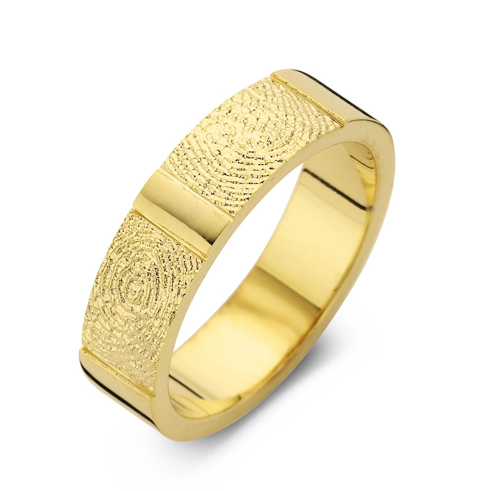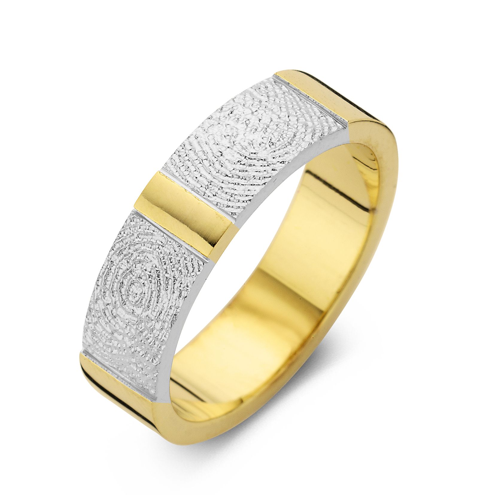 The True Double Print is a ring of appr. 6,5mm or 5,5mm width, with a fingerprint. The ring is available in the versions shown below.